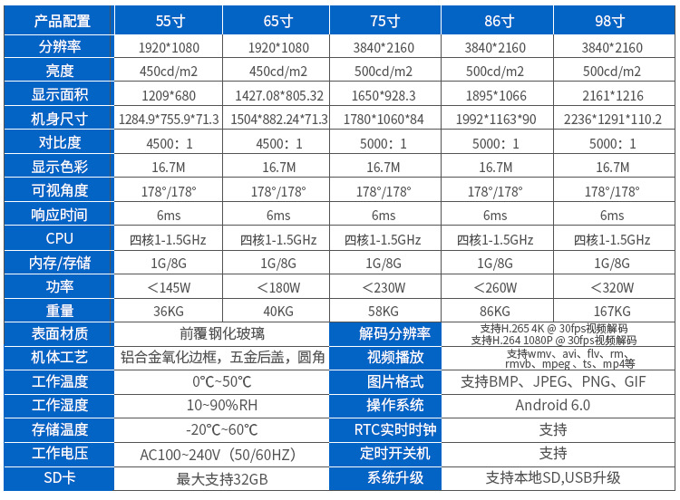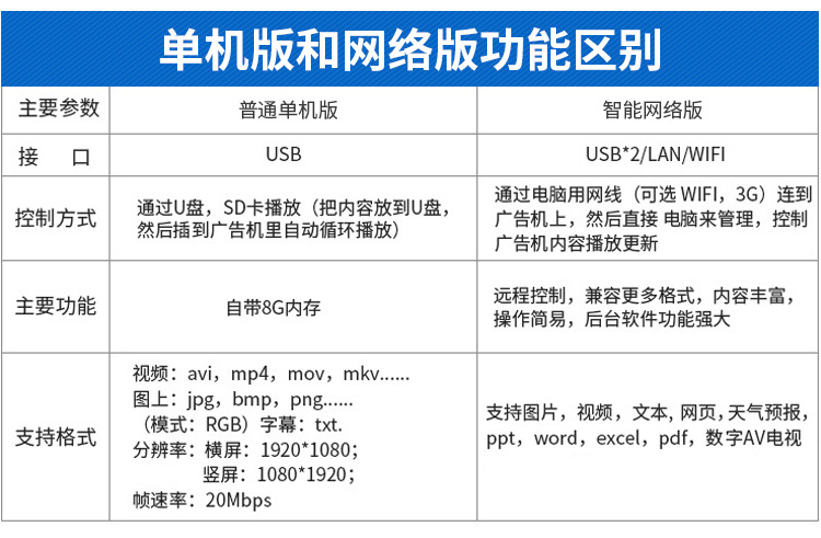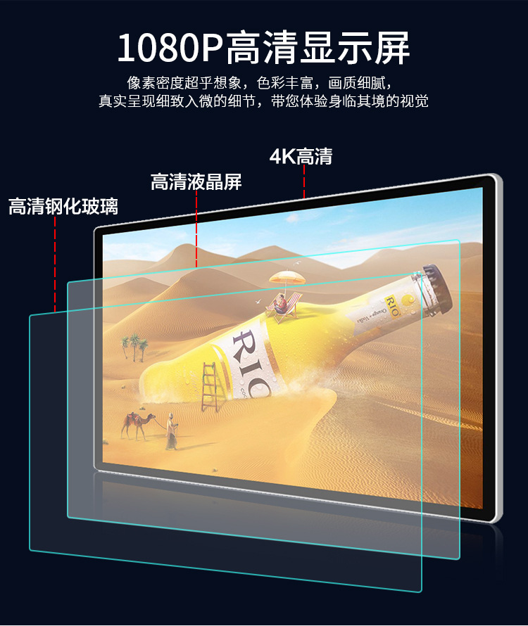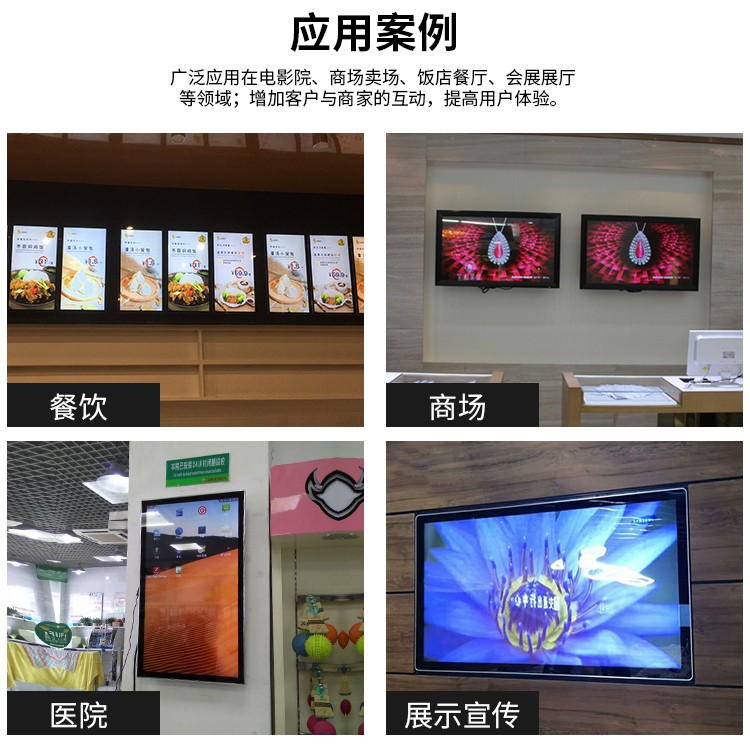 65寸壁掛廣告機采用專業級工業液晶屏,視頻圖像展現清晰、自然,能夠更好的表現廣告細節;機身設計外觀時尚、大方,超薄,使用方便、美觀,采用全新環保技術,穩定性好,能夠適應并在惡劣環境中正常工作。正常使用情況下,可達60000小時以上的超長的使用壽命,并且能夠7*24小時不間斷工作。目前,液晶廣告機憑借優良的顯示性能,已經成為人們認同的理想的“第五大媒體”顯示設備。