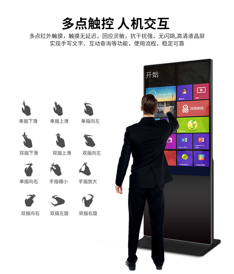 內置紅外觸摸屏,采用最新高精度觸摸技術、獨特電路設計、智能判定和紅外抗干擾等先進技術,穩定性強、響應靈敏。